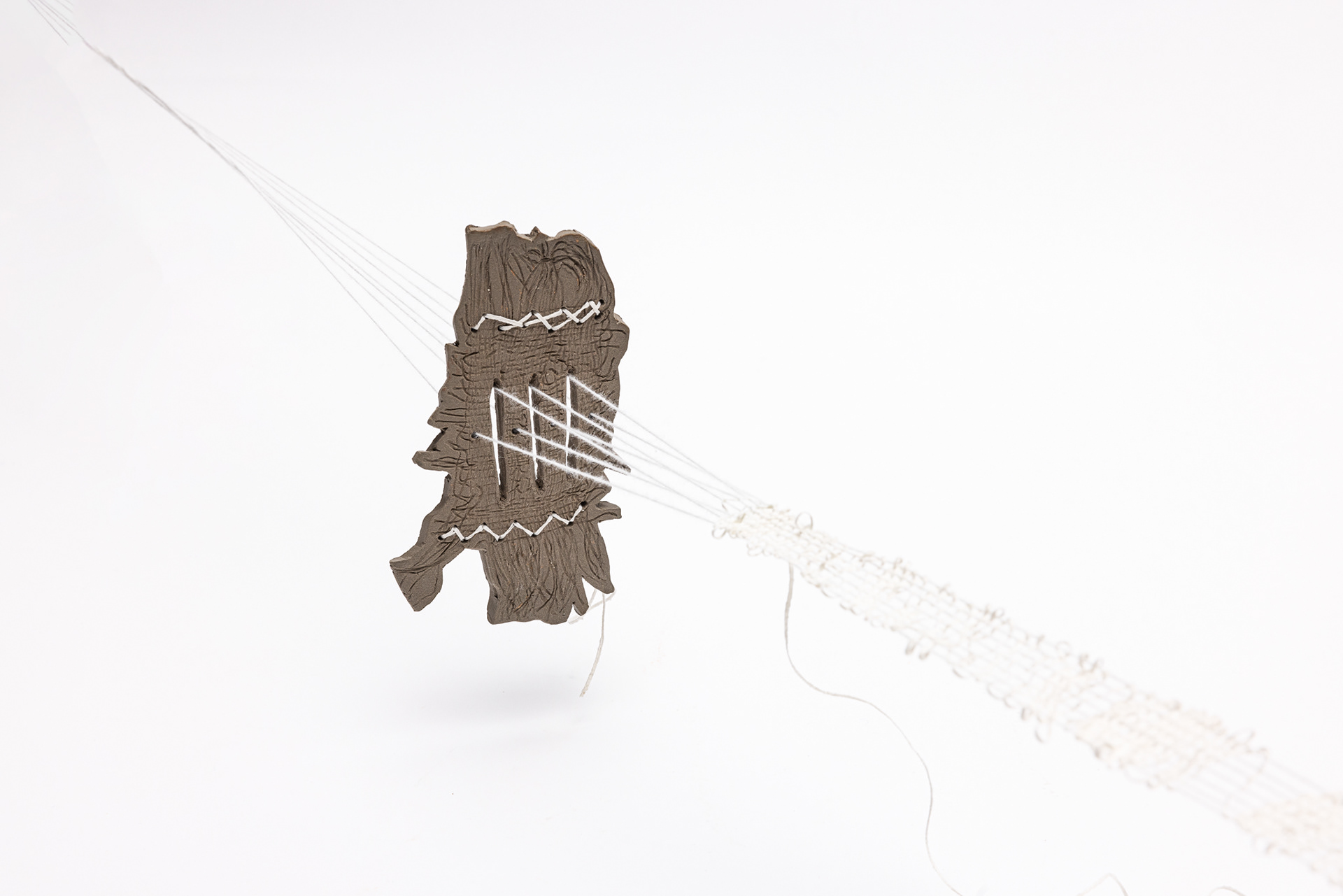 Stoneware, cotton, wool, natural dyes of logwood, iron and myrobolan.